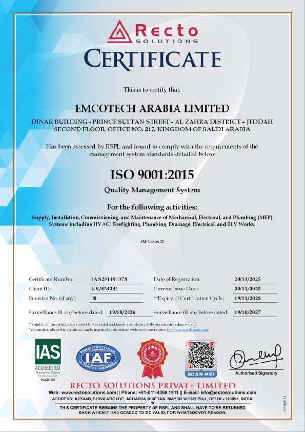 EMCOTECH is a leading electromechanical and infrastructure solutions provider, with operations spanning Egypt (est. 2003), Qatar (2010), Saudi Arabia (2012).and 2024 in UAE, Our Qatar and Saudi Arabia and UAE extensions serve as a symbol of success of our mother branch in Egypt
