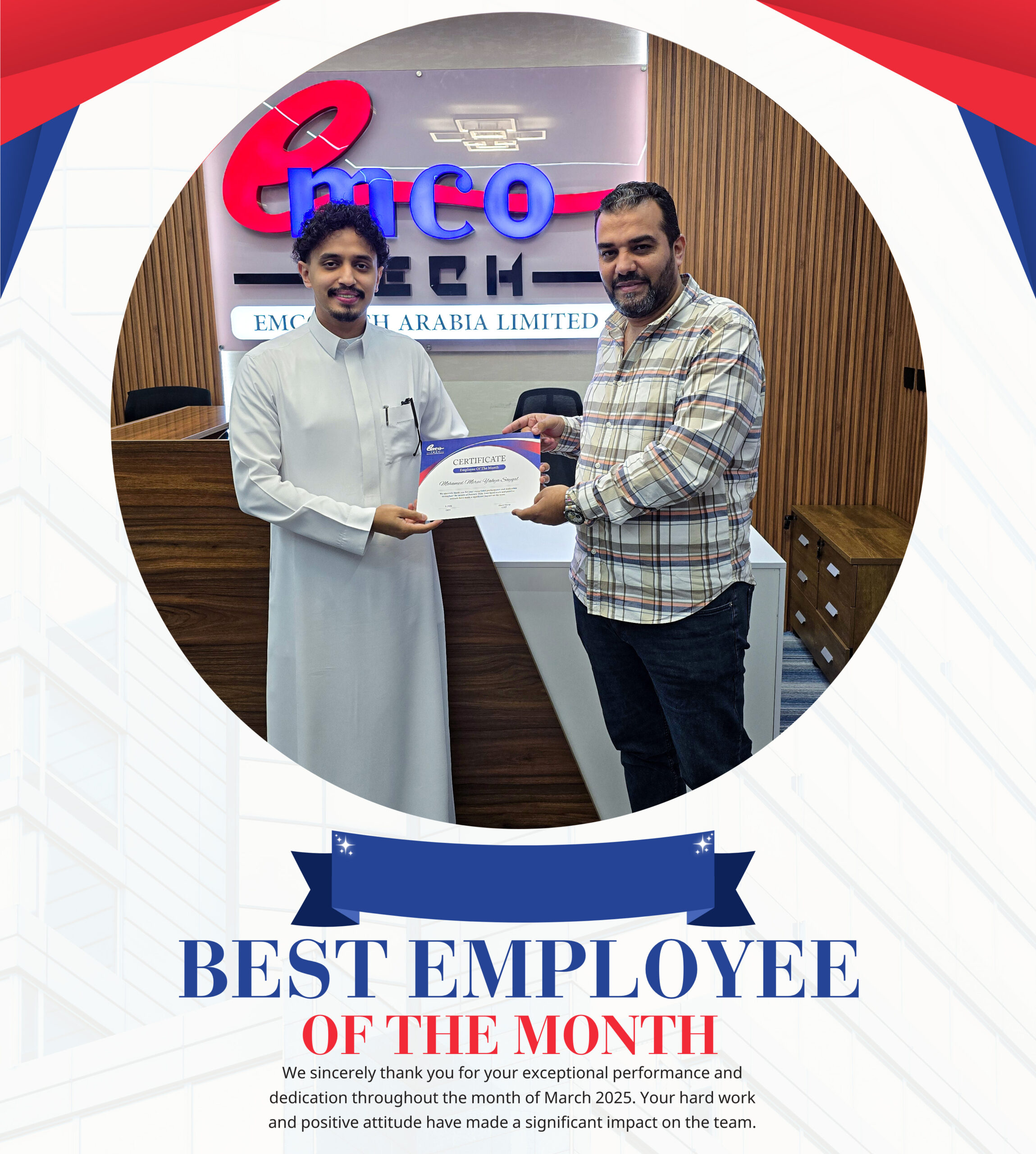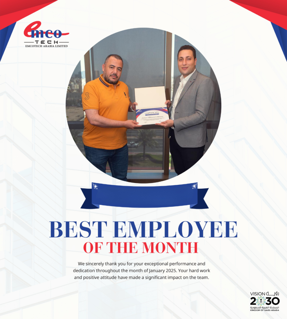 “Excellence is not a fleeting act, but a habit embodied by innovators. The management of EMCOTECH ARABIA expresses its pride in selecting the best employees each month, in recognition of their tangible contributions and their effective role in achieving the team’s goals efficiently and competently. We are proud that they are an inspiring role model for their colleagues, and we look forward to more successes together.”